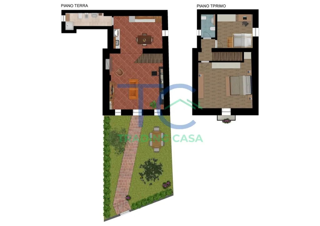 Al primo piano trovi una sala luminosa, una cucina abitabile perfetta per i pranzi di tutti i giorni e un bagno funzionale. Con una scala comoda si sale nella zona notte, dove ti aspettano una camera matrimoniale accogliente, una seconda camera ideale per i bambini o per creare uno studio, e un ulteriore bagno.